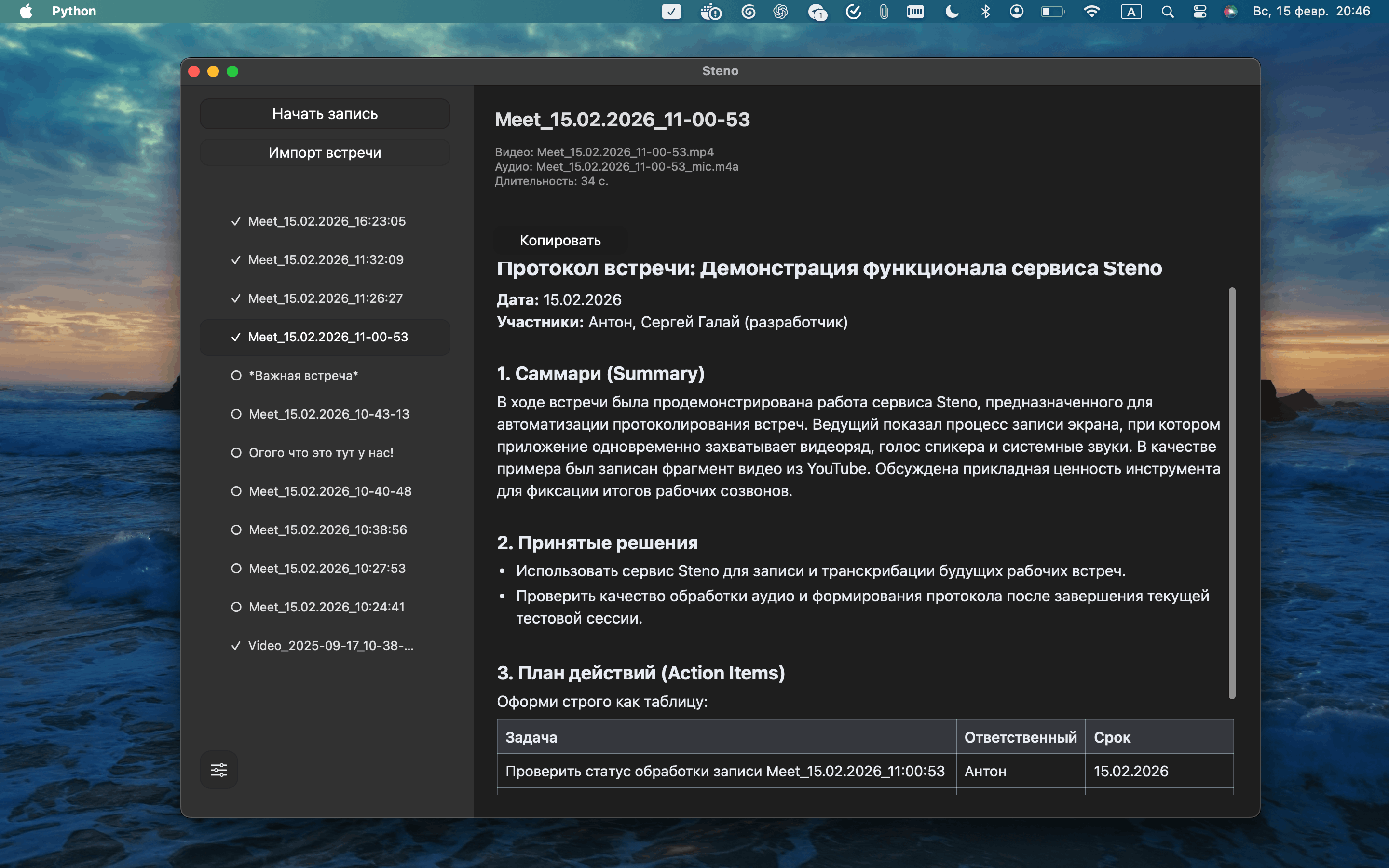Steno transforms your meetings into perfectly structured protocols using advanced AI. Record, transcribe, and organize with zero effort.